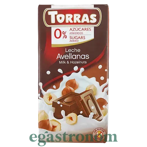 Шоколад молочний з фундуком (без цукру) Торрас Torras leche avellanas milk&hazelnuts 75g 12шт/ящ