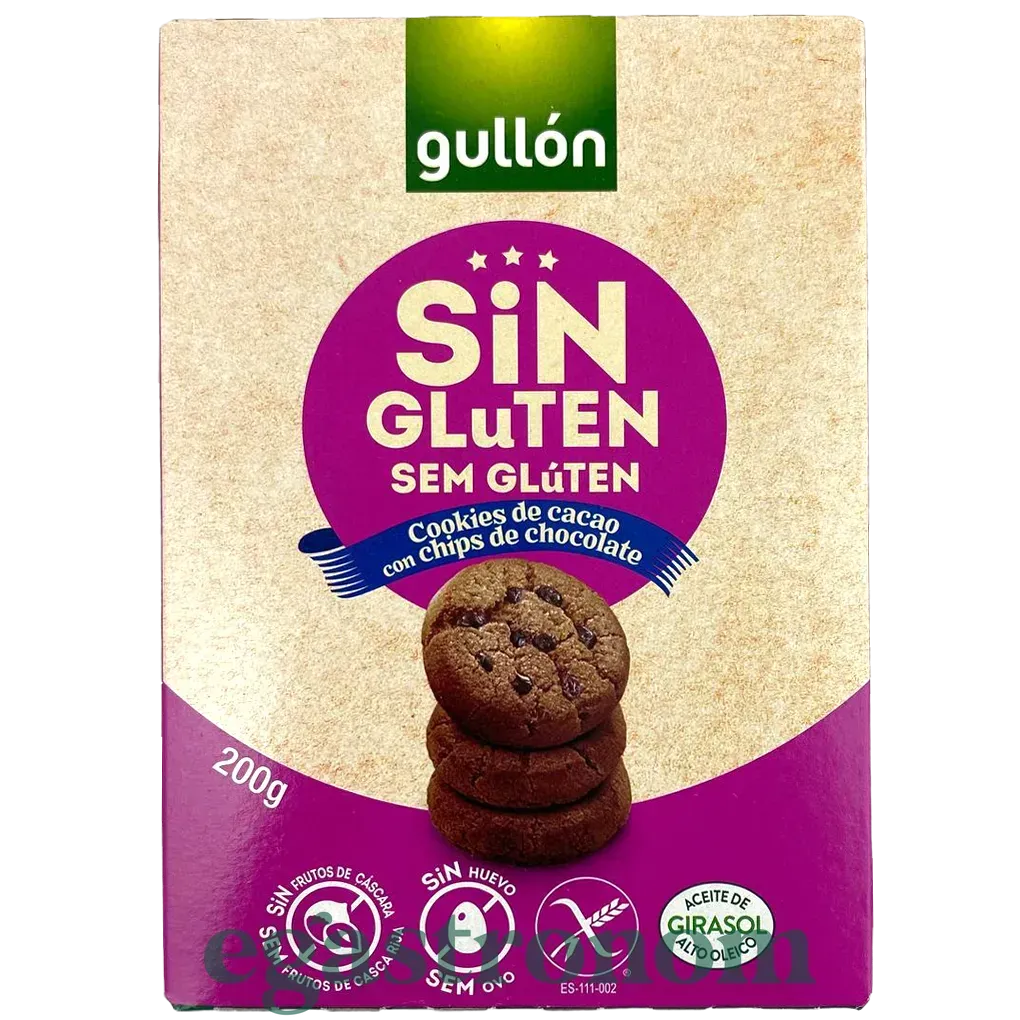 Шоколадне печиво з шоколадною крихтою від іспанського бренду Gullon. До складу продукту не входять: глютен, горіхи та яйця. До того ж у складі немає консервантів, гідрогенізованих жирів та пальмової олії.