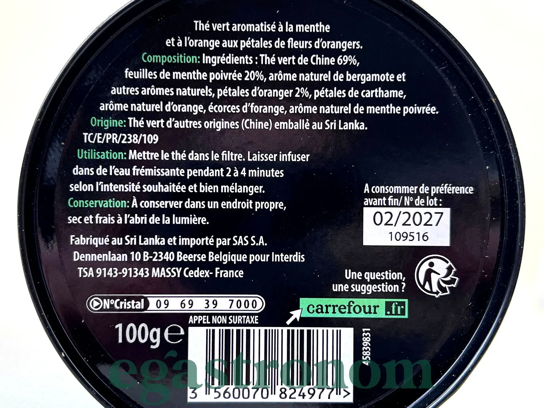 Чай зелений зі смаком м'яти та апельсина Керфо Селекшн Carrefour Selection ж/б menthe 100g 8шт/ящ