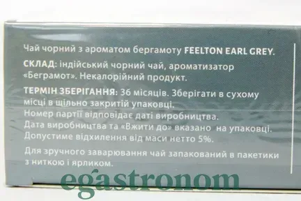 Чай чорний в пакетиках ерл грей Філтон Feelton earl grey 25пак 50g 18шт/ящ