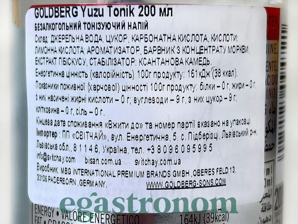 Напій газований тонік японський юзу Голдберг Goldberg japanese yuzu с/б 200ml 24шт/ящ. Зображення №2