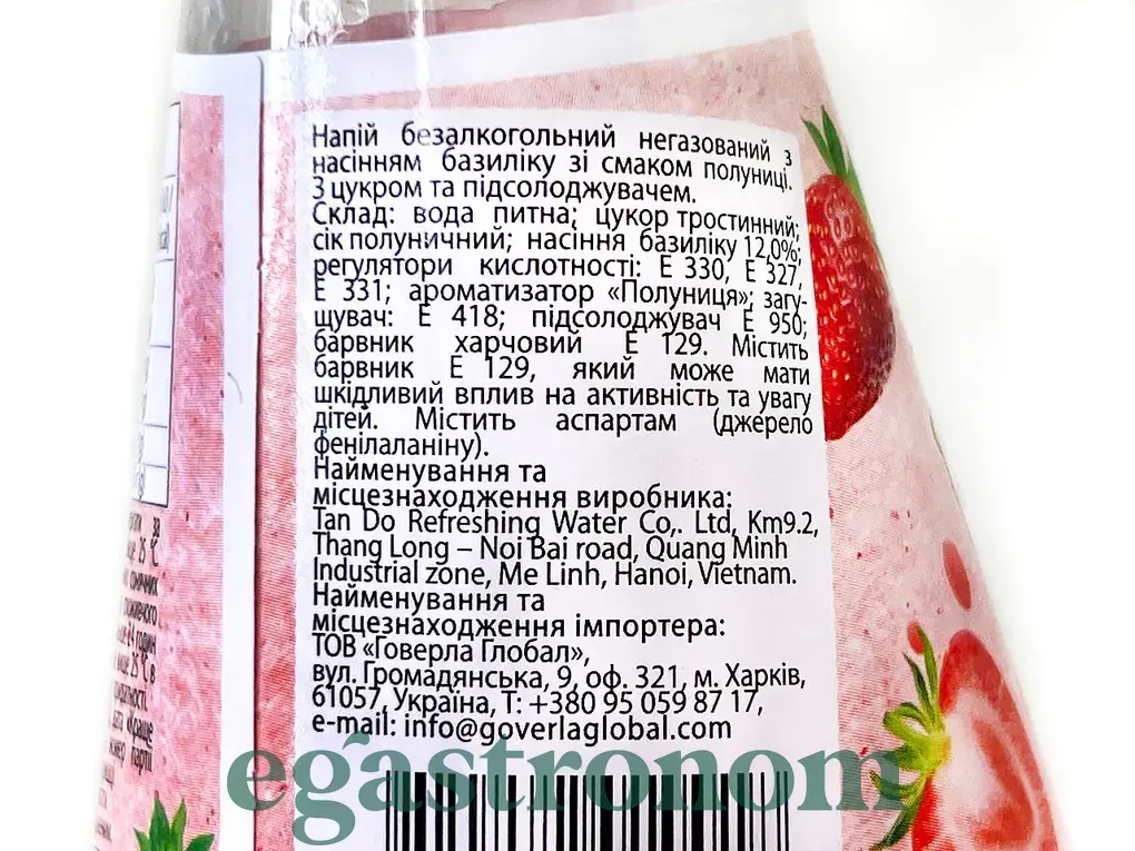 Легкий, приємний та освіжаючий напій, який хочеться пити знову і знову. Ніжний полуничний смак із приємною текстурою насіння базиліку. Ідеально для тих, хто любить натуральні смаки з родзинкою. Кількість на палеті: 2304шт.