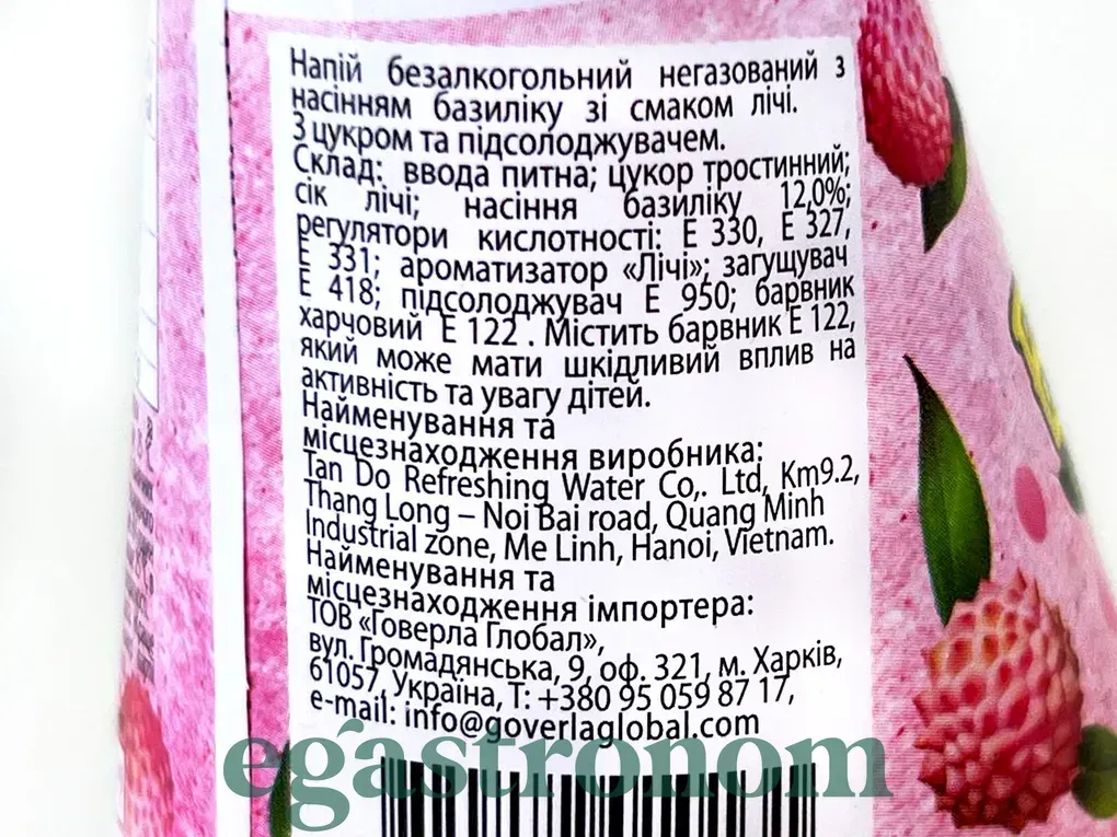 Ніжний і солодкий смак лічі з м’якою текстурою насіння базиліку — екзотика, що освіжає та приємно дивує. Містить 12% насіння базиліку — натуральне джерело клітковини. Ідеальний варіант для втамування спраги в спекотний день. Кількість на палеті: 2304шт.