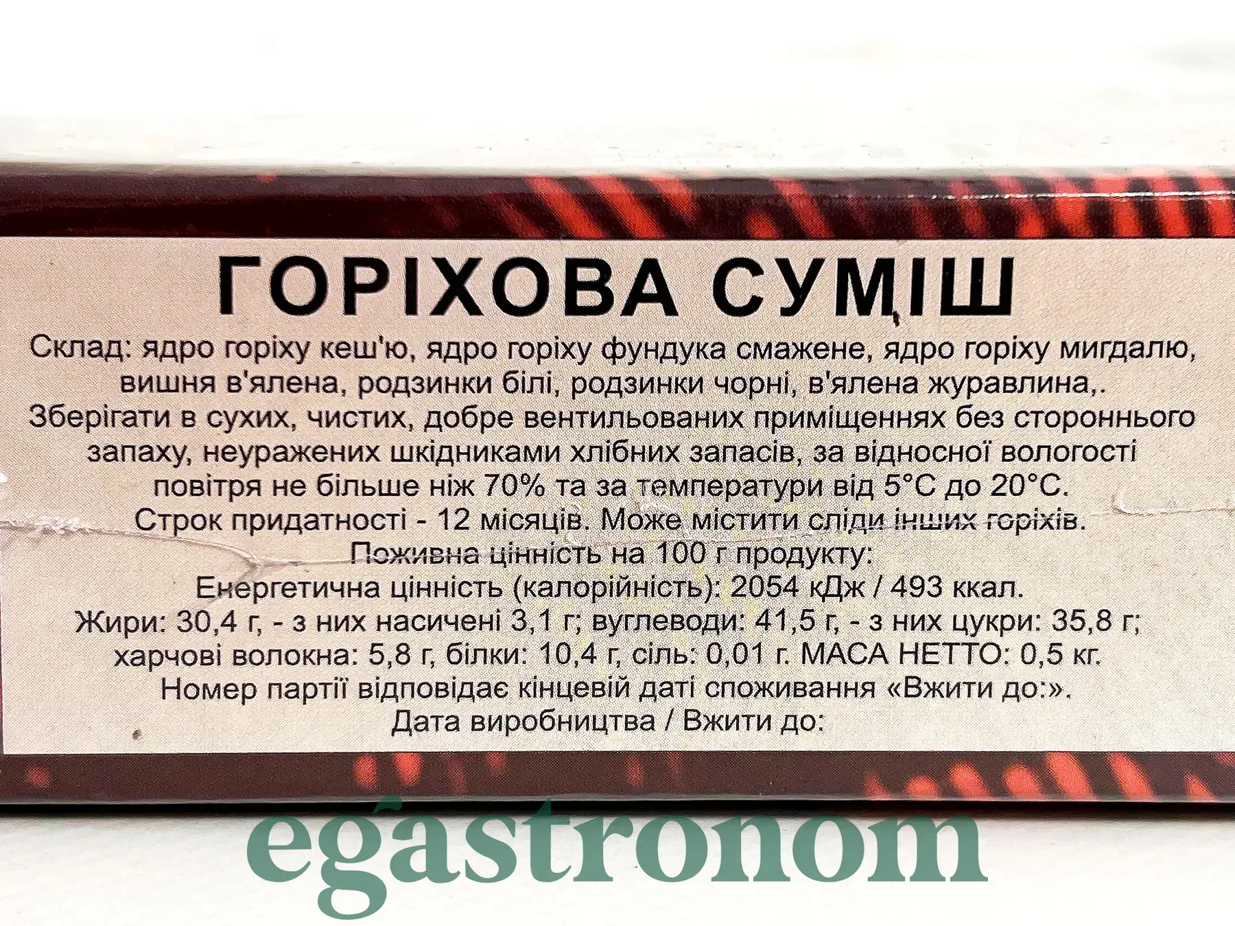 Горіхове асорті з сухофруктами суміш віп 500g 15шт/ящ
