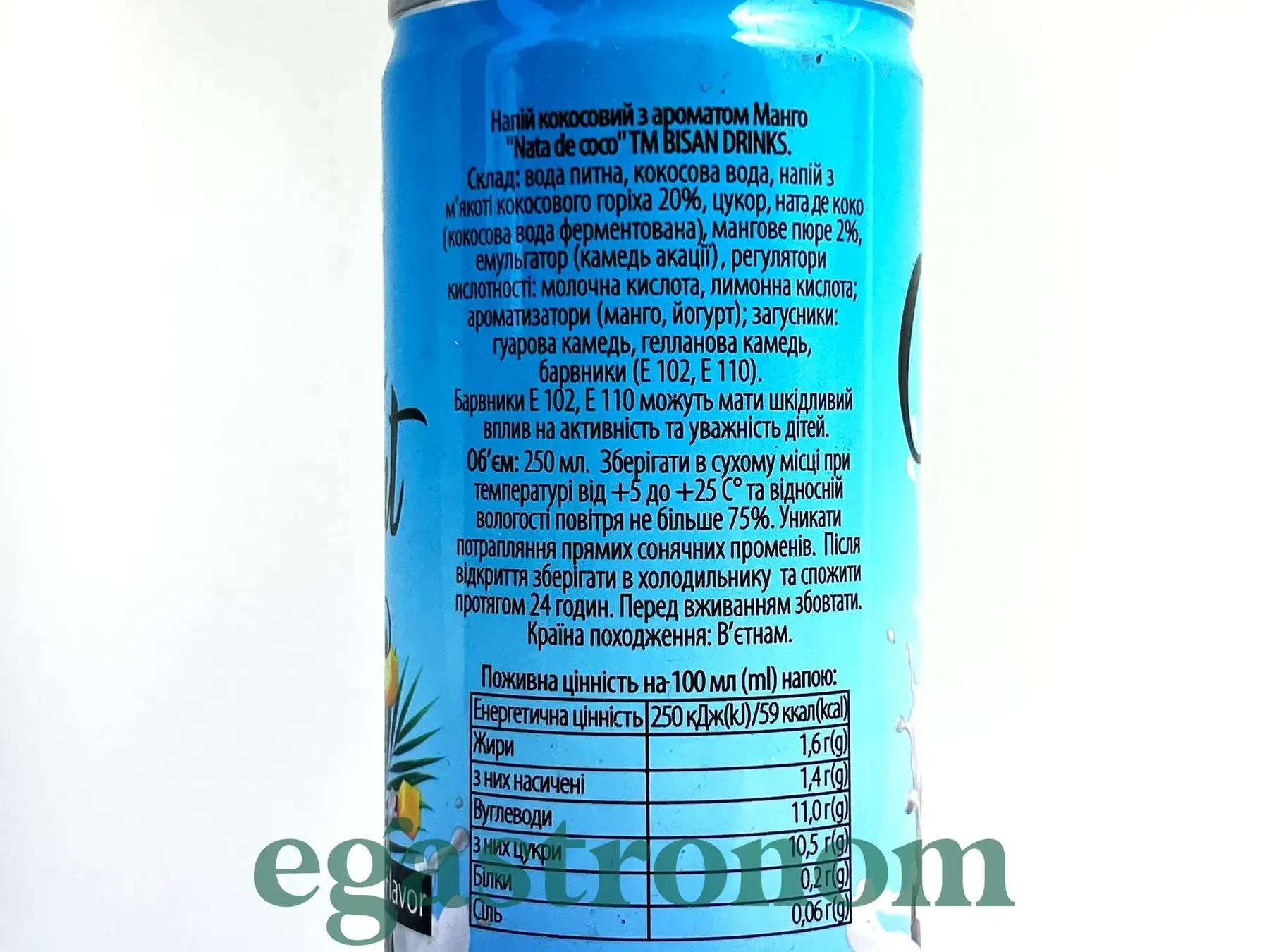 Напій кокойогурт манго ж/б Бісан Bisan Cocogurt mango 250ml 24шт/ящ