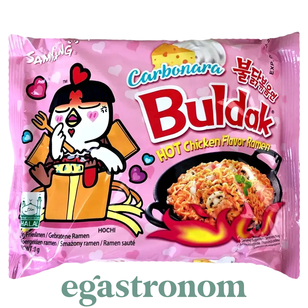 Локшина швидкого приготування зі смаком курки в соусі карбонара гостра Булдак Buldak 130g 40шт/ящ