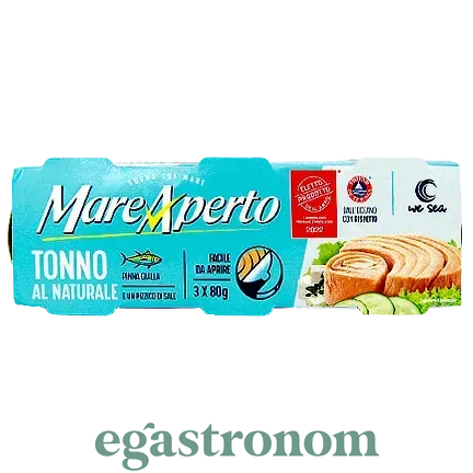 Тунець у власному соці (спайка) Маре Аперто Mare Aperto al naturale 3*80g 32пач/ящ
