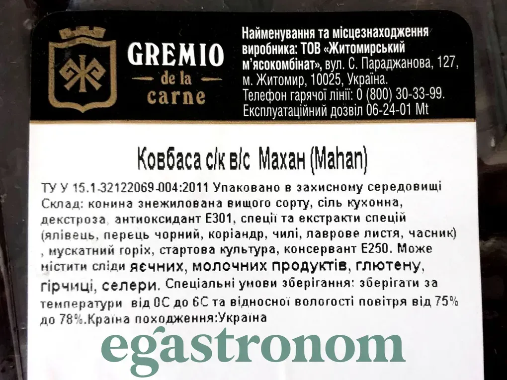 Ковбаса нарізка сирокопчена махан Греміо Gremio de la carne mahan 75g 12шт/ящ