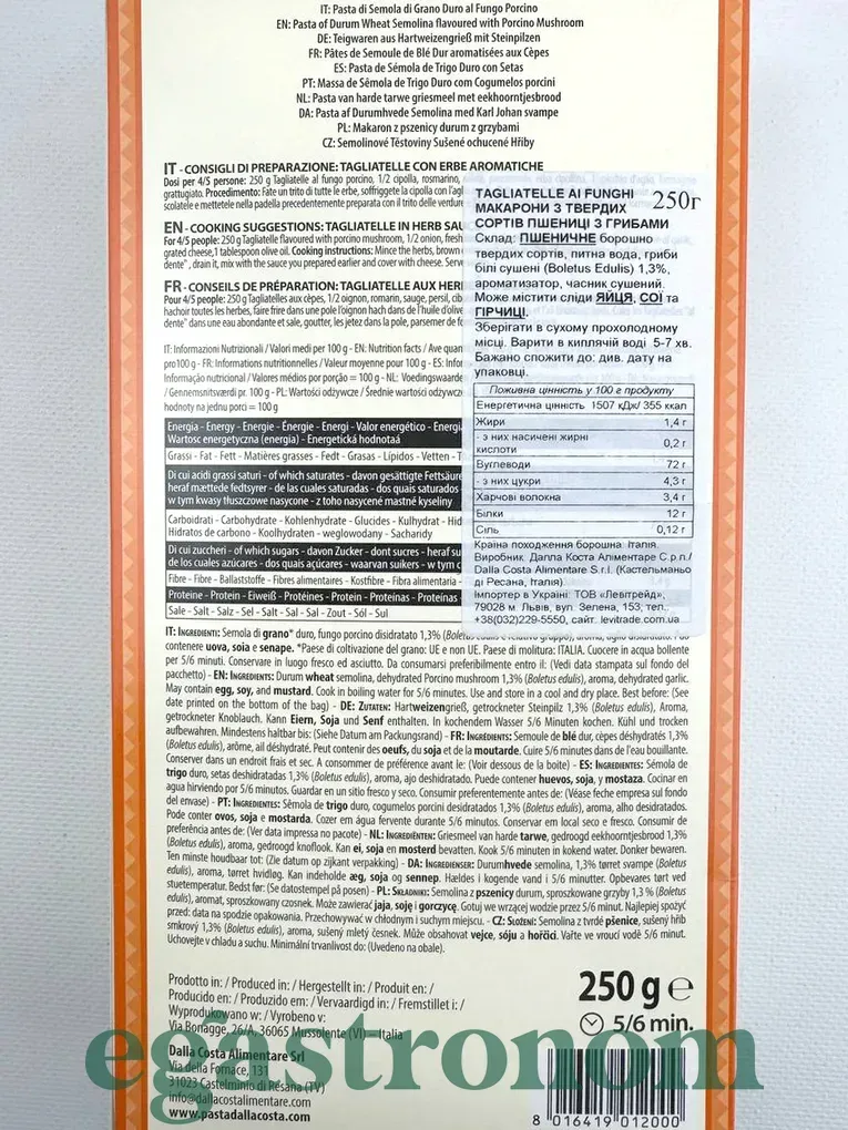 Dalla Costa - це витончена італійська паста, що поєднує ніжні плоскі нитки Tagliatelle з ароматними грибами. Кожен ковток цієї пасті захоплює вас багатим і збалансованим грибним смаком, який вирізняється серед інших видів пасти. ТОП запити Купити рідкий порошок для прання Ціна моцарели Порошки пральні Плавлений сир ціна Варення купити Миючі засоби для кухні Горіхові пасти купити
