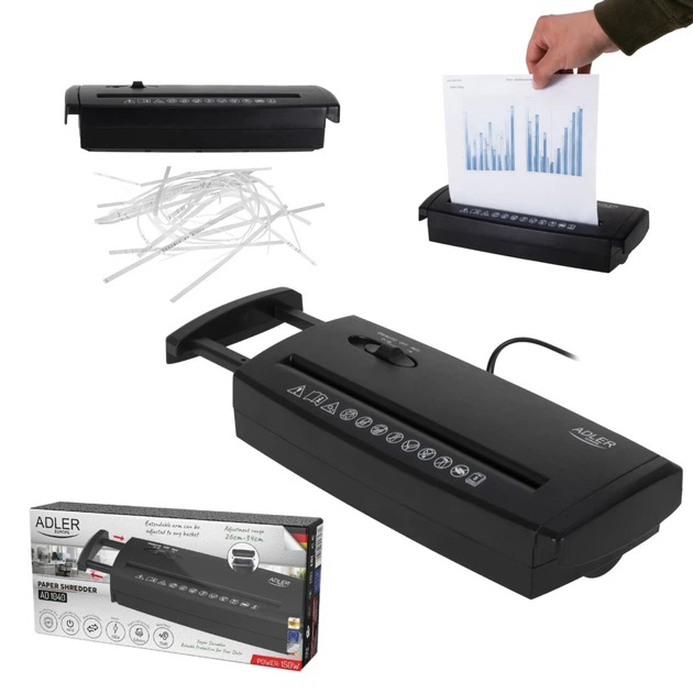 - Безпека та надійність: Захист від перевантаження оберігає двигун і ріжучий механізм, роблячи шредер Adler AD 1040 довговічним знищувачем документів.