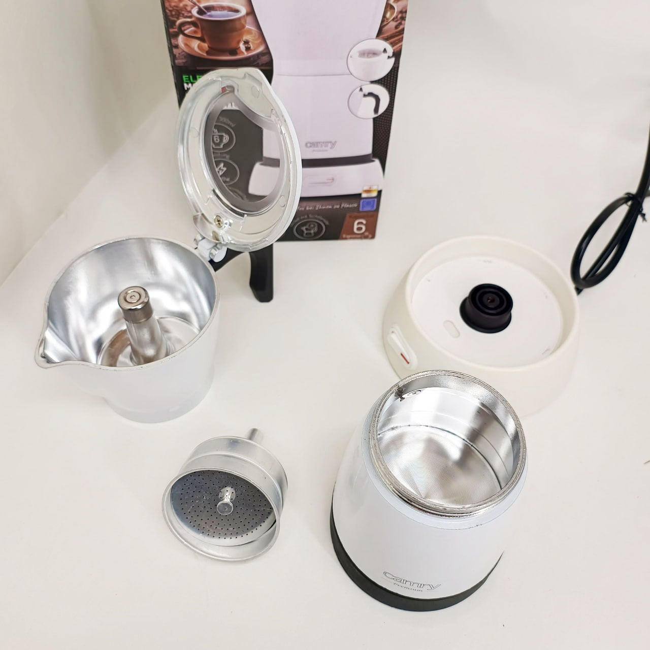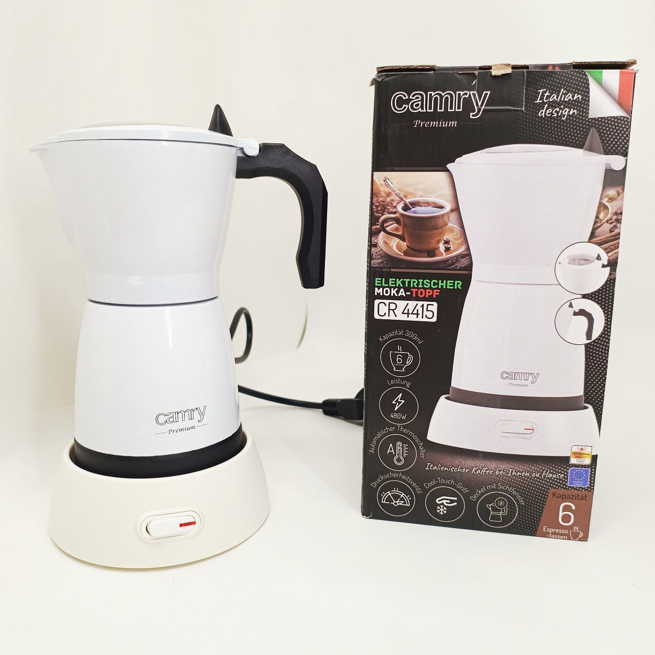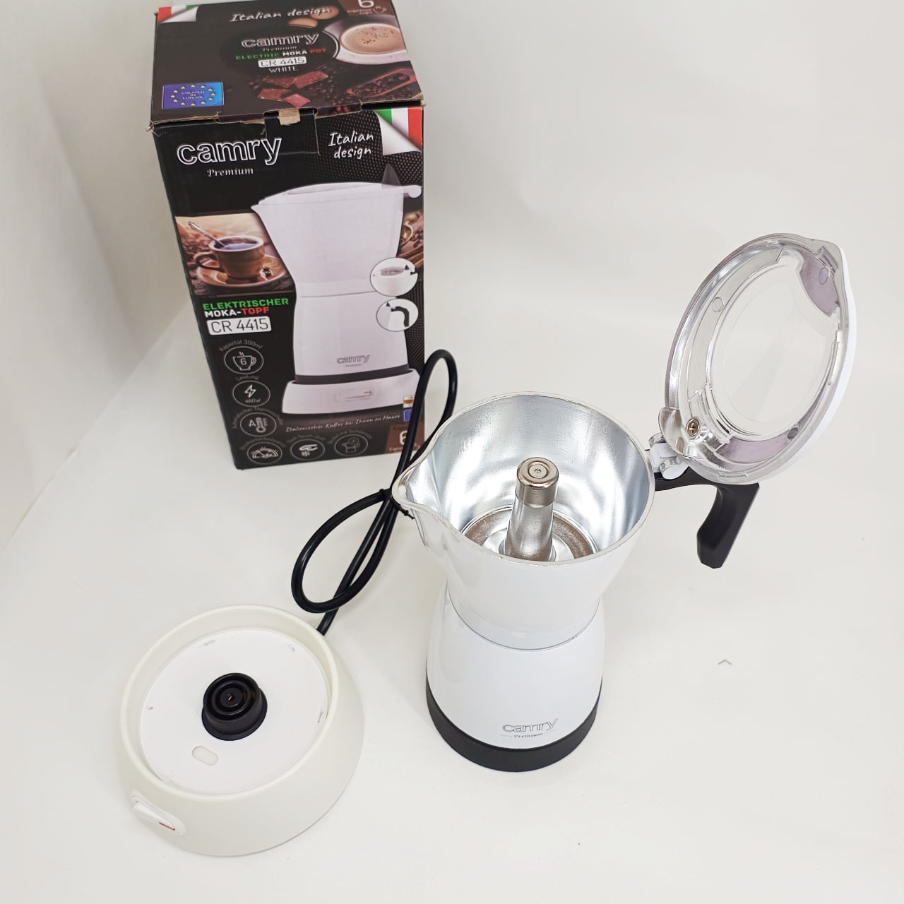 Кавоварка Camry CR 4415 – ідеальне кухонне обладнання для кожного любителя кави. Завдяки великій ємності (300 мл) можна приготувати до 6 чашок еспресо. Компактний дизайн ідеальний для подорожей. При заварюванні кави всередині апарату CR 4415 кави. Для виготовлення корпусу пристрою був використаний алюміній – матеріал, який добре працює під час використання. Кожен любитель кави знає, що для отримання ароматного напою необхідний високий тиск. Немає нічого смачнішого за каву, приготовлену вдома. Найбільшою перевагою кавоварки є те, що вона електрична. розетку. основа підходить для шульги та правшів, а крута ручка дозволяє практично відразу налити готовий напій у склянку.
