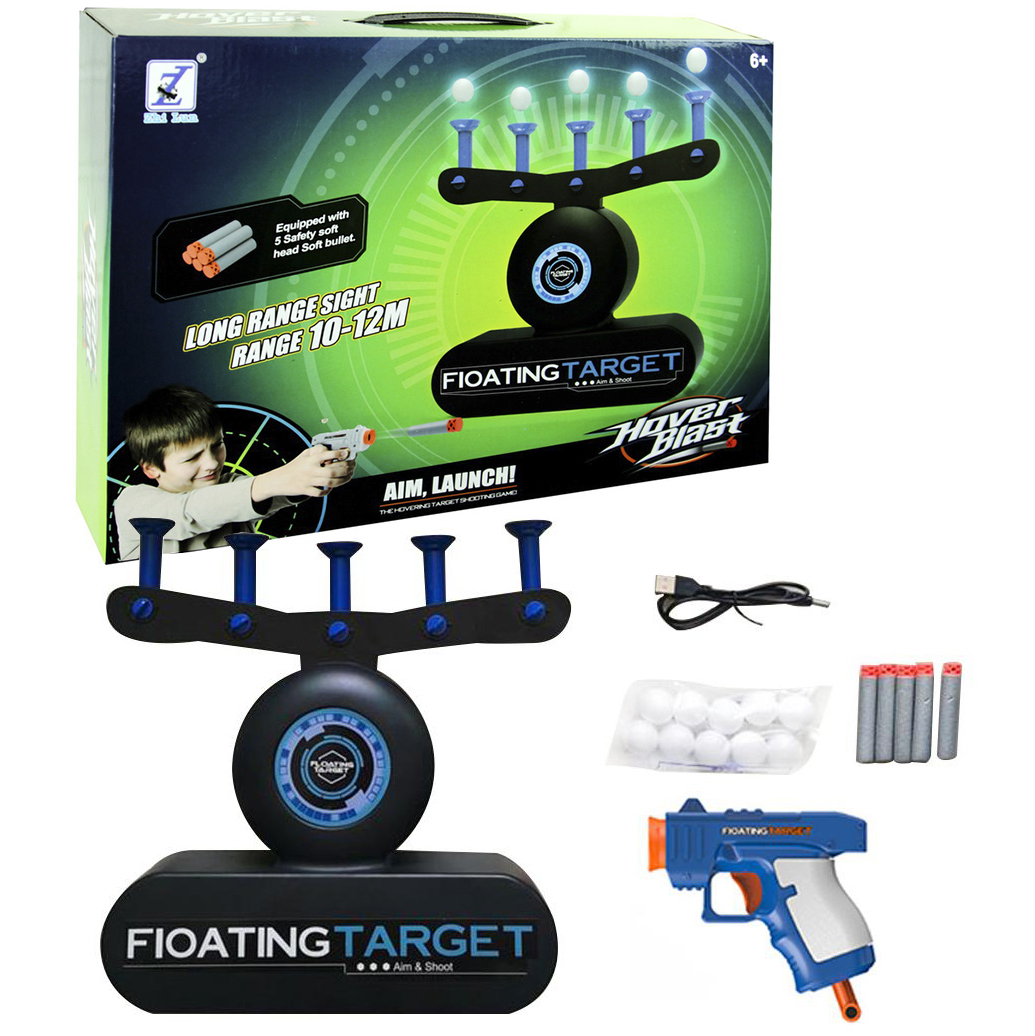 Ігровий набір повітряний тир Hover Blast складається з бази, бластерів, пінних патронів та кульок. Суть гри полягає в тому, що потрібно потрапити в кульки, які не просто лежать, а ширяють у повітрі. В базу вбудований вентилятор, який подає повітря в сопла, на яких розташовуються кульки. Вентилятор піднімає кульки на висоту і не дає їм опускатися, тримаючи їх у повітрі!