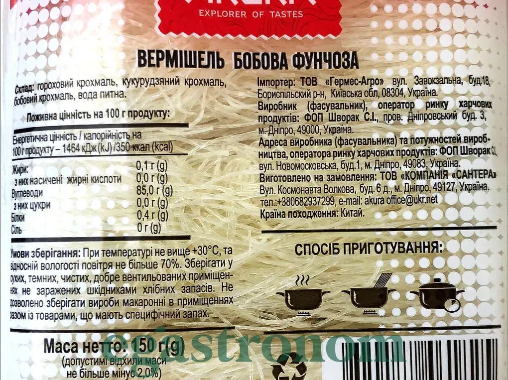 Вермішель з зелених бобів фунчоза Акура Akura 150g 40шт/ящ. Зображення №2