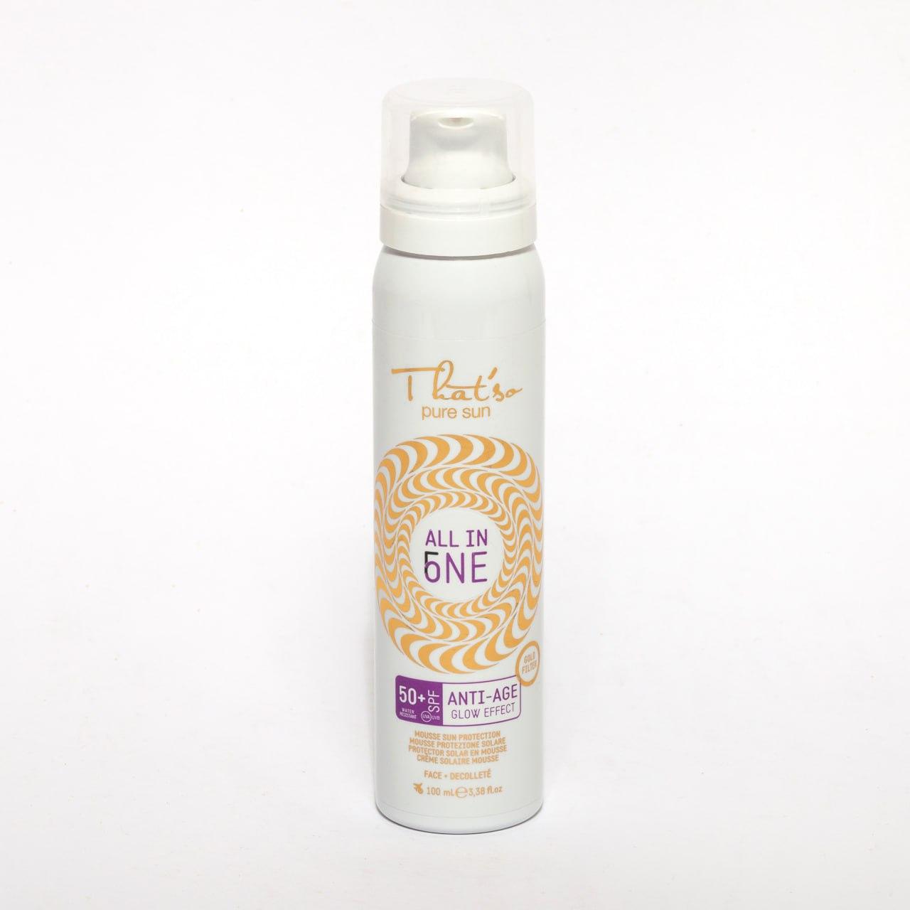 That’so All in 5NE – розкішний захист та сяйво шкіри в одному флаконі ☀️✨Ключові переваги:• 🛡 Високий рівень захисту SPF 50+ від UVA та UVB променів.• 🌟 Ефект «Glow» завдяки золотим світловідбивним частинкам – шкіра виглядає свіжою та доглянутою.• ⏳ Anti-age формула з потужними антиоксидантами допомагає запобігти фотостарінню.• 💧 Легка пінка зволожує та залишає шкіру оксамитовою.• 🌊 Водостійка – ідеальна для пляжу, басейну та активного відпочинку.Активні інгредієнти:• Вітамін Е – антиоксидант, що бореться зі старінням.• Золотий фільтр – створює ефект сяйва на шкірі.Рекомендовано для:Захисту шкіри обличчя та зони декольте від сонячних променів під час відпочинку, прогулянок чи занять спортом на відкритому повітрі.Обʼєм: 100 мл – компактний формат, зручний у подорожах.Дерматологічно протестовано. Nickel tested 🩺