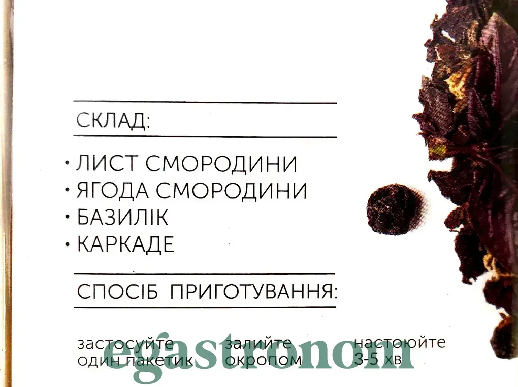Поєднання кисло-солодкого смаку чорної смородини та свіжих пряних нот базиліку. Чорна смородина надає напою легку кислинку та багата на вітаміни, сприяючи зміцненню імунітету. Базилік додає свіжість та пряність, відомий своїми антиоксидантними властивостями. Ідеально підходить для щоденного вживання, даруючи насолоду смаком та користь для організму.