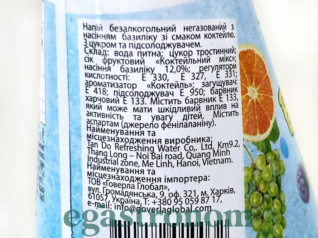 Яскравий фруктовий мікс із насінням базиліку — безалкогольний коктейль, який підкорює виглядом і смаком. Комбінація кількох тропічних ароматів та приємна гелева текстура насіння створюють неповторне відчуття. Ідеально як для дорослих, так і для дітей. Кількість на палеті: 2304шт.