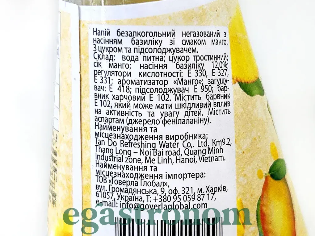 Соковитий напій без газу з насінням базиліку та насиченим смаком манго. Освіжає, тішить око яскравим кольором і дарує справжнє тропічне задоволення. Містить 12% насіння базиліку — натуральне джерело клітковини. Ідеальний варіант для втамування спраги в спекотний день. Кількість на палеті: 2304шт.