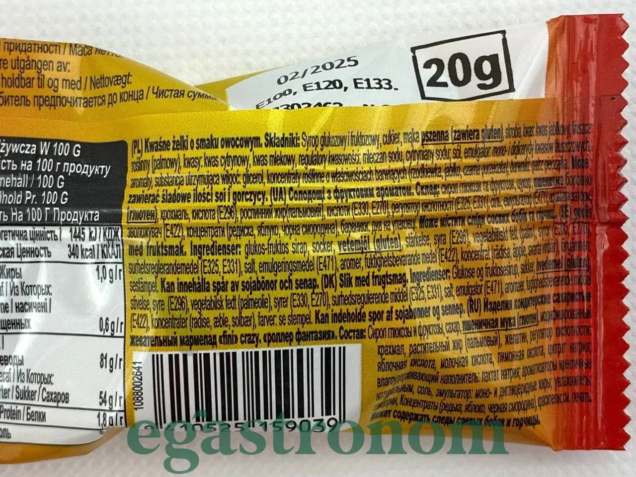 Цукерки жувальні роллер (без глютену) Фіні Fini roller 20g 18шт/пач