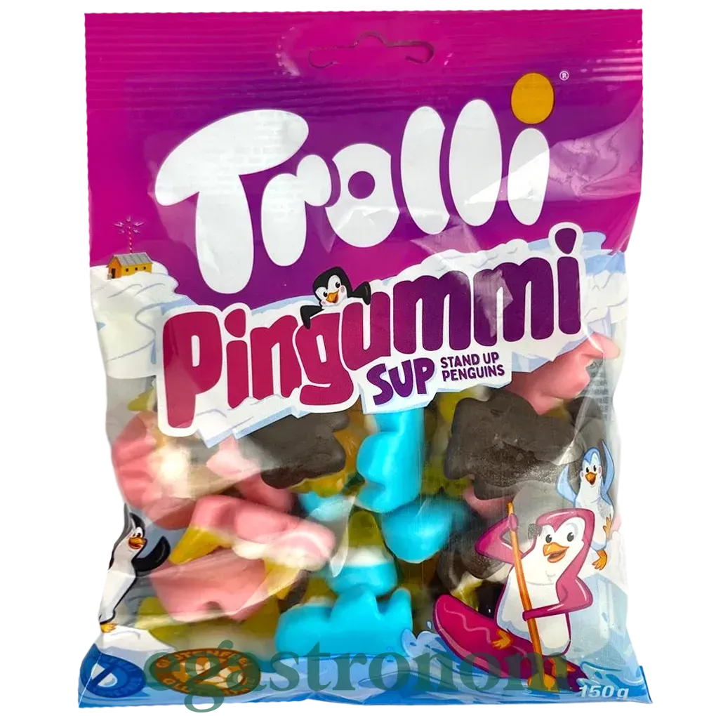 Желейки у формі різнокольорових пінгвінів з фруктовим смаком. Желейки "Троллі" на основі натуральних соків. У складі цукерок використовуються тільки натуральні компоненти, а в якості желеутворювача, унікальне природне речовина карагінан. Це не тільки смачні, але і корисні ласощі!