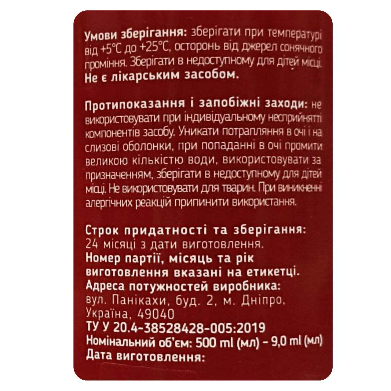 | Об`єм, мл | 500 |