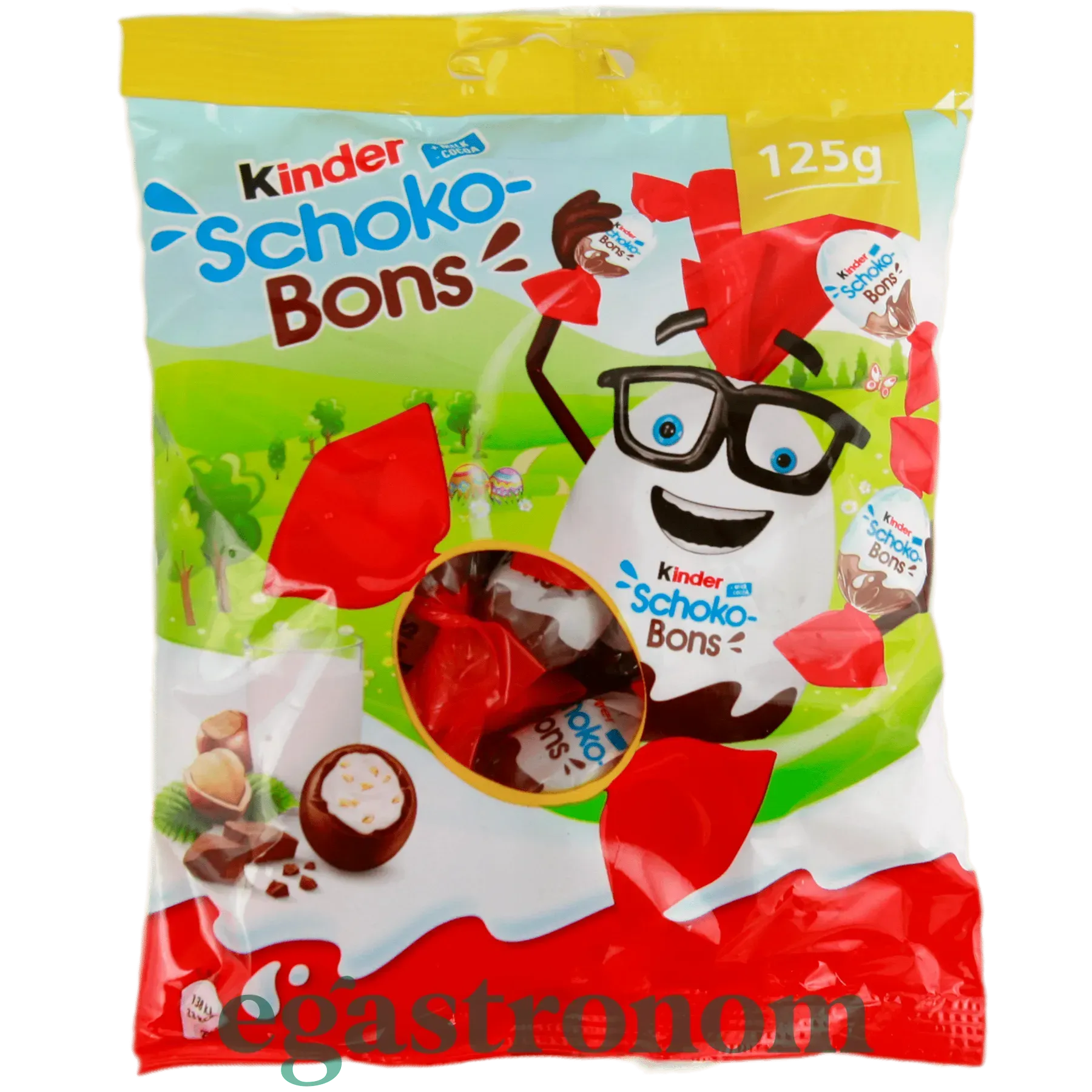 Kinder Choco-Bons – шоколад Kinder у формі цукерок! Його люблять діти та батьки у всьому світі. Кожна маленька цукерка приховує у собі ніжну молочно-горіхову начинку, неповторний смак молочного шоколаду та шматочки лісових горіхів. Цукерки в індивідуальній упаковці зручно брати із собою. Вдома, у школі, на прогулянці – насолоджуйтесь самі та радуйте друзів та близьких щодня! Kinder Choco-Bons – шоколадні цукерки Kinder для всієї родини!