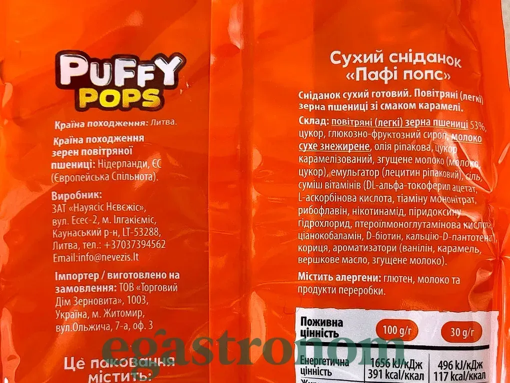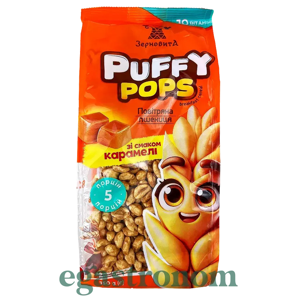 Сухий сніданок повітряна пшениця карамель Зерновита Пафі Попс 150g 30шт/ящ