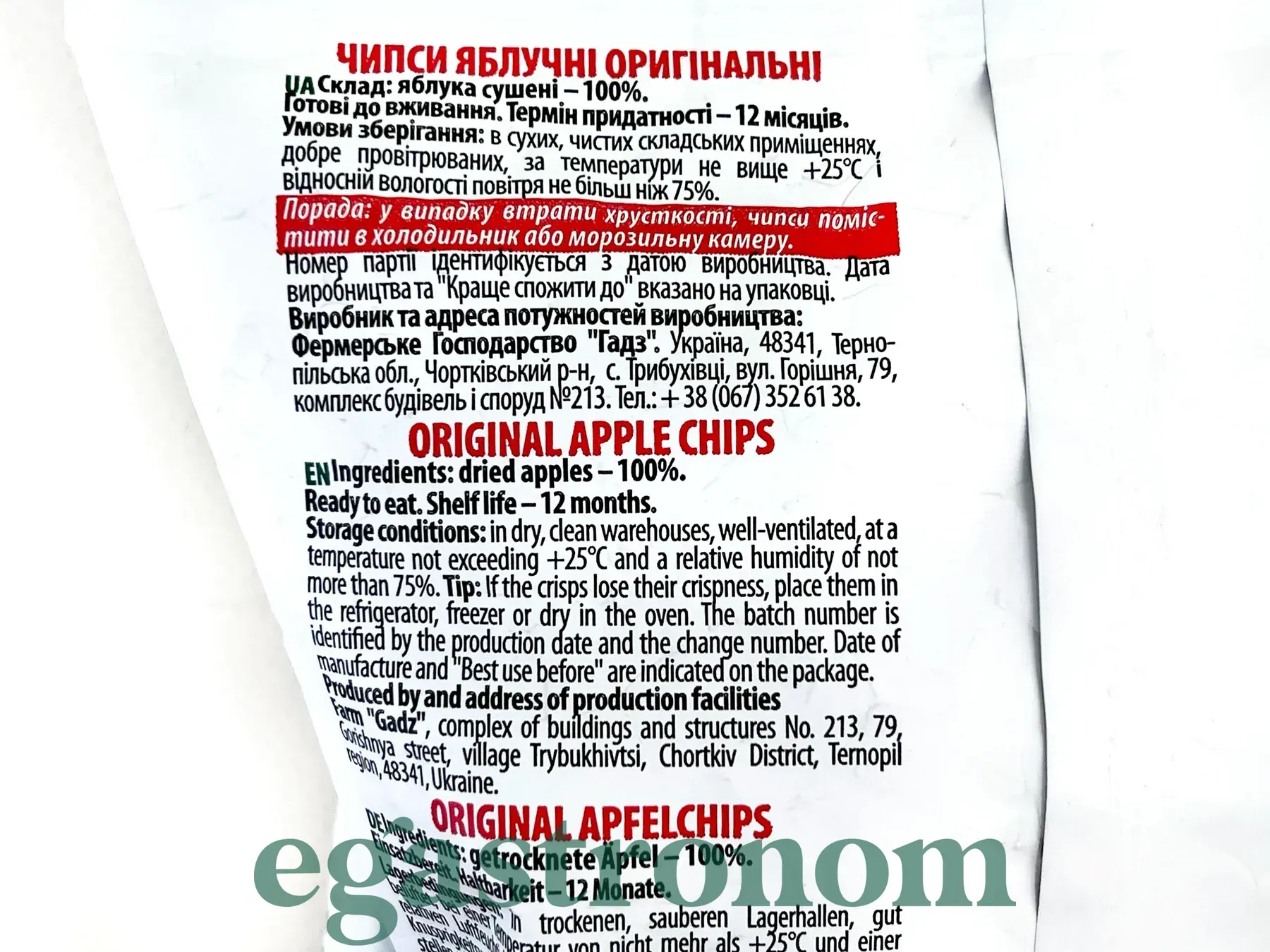 Чипси яблучні оригінальні Гарден Гадз Garden Gadz 40g 20шт/ящ