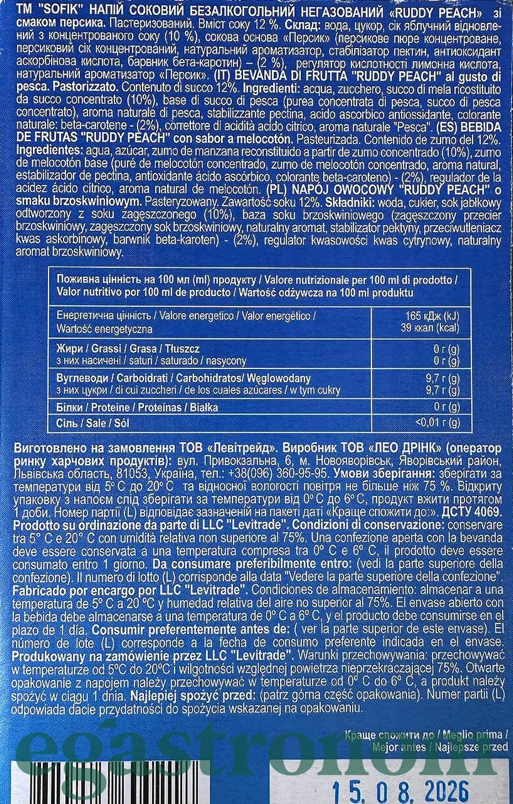 Сік зі смаком персика Софік Sofik ruddy peach 200g 10шт/пач