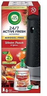 Ароматичний освіжувач повітря Air Wick Active Fresh Winter Punch & Spices вивільняє аромат поступово, наповнюючи приємним ароматом ваше приміщення. Крім цього, освіжувач нейтралізує небажані запахи.