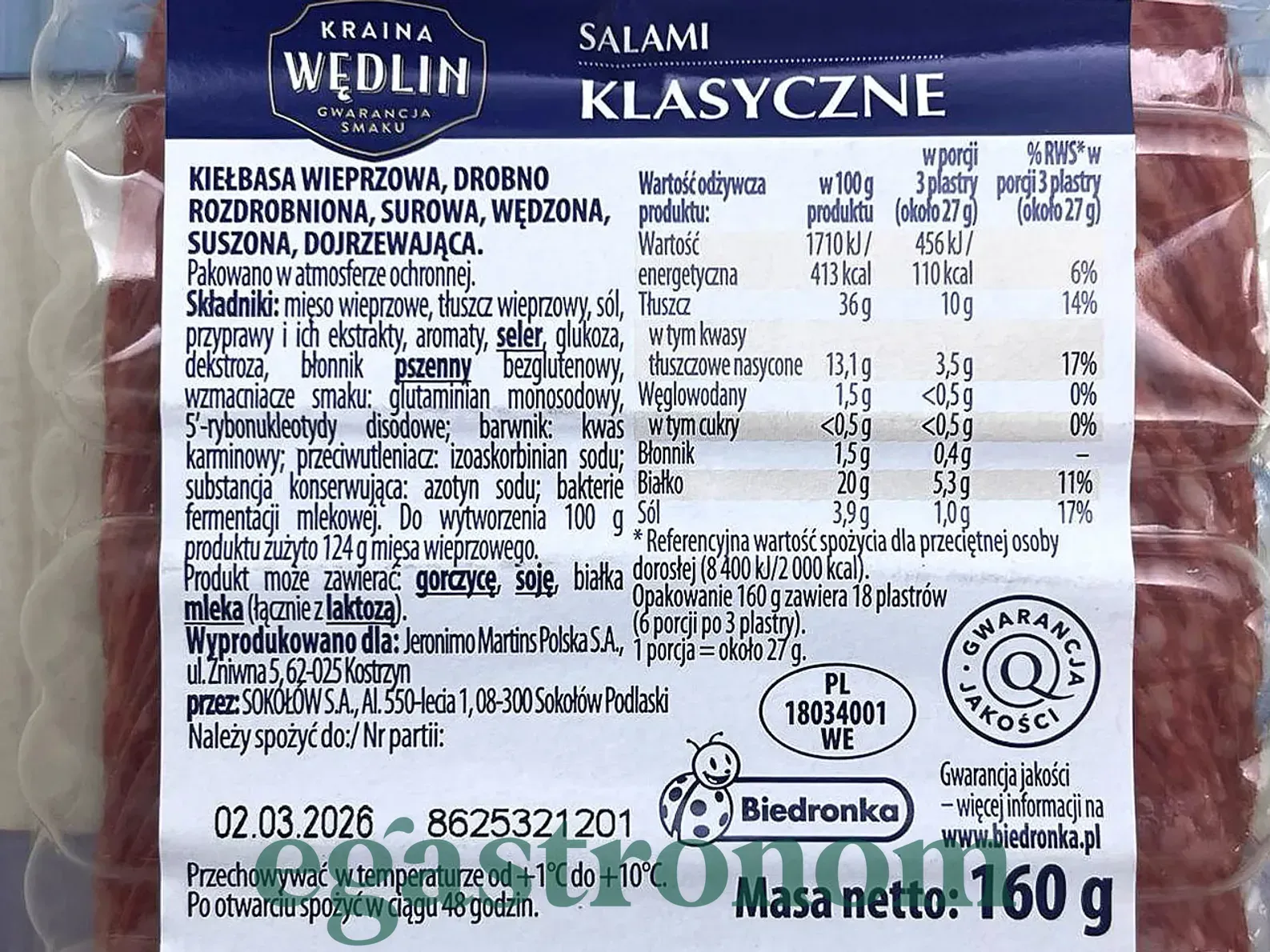Ковбаса нарізка класична салямі Ведлін Wedlin klasyczne 160g 10шт/ящ