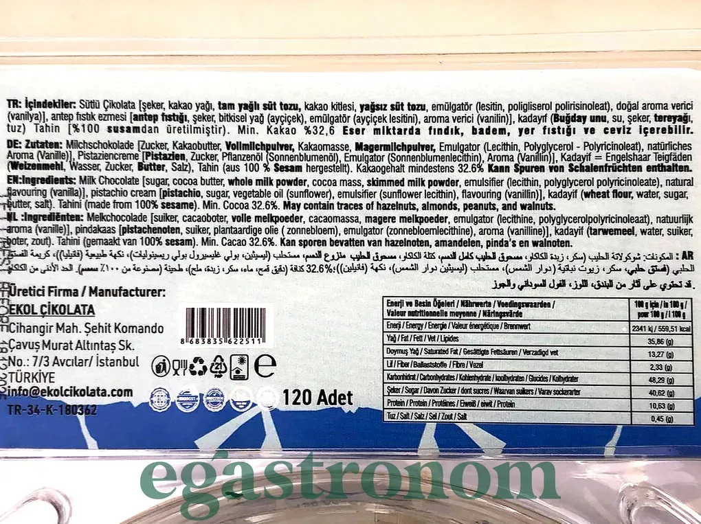 Шоколад Дубайський з фісташкою Корал Coral 120*16g 1пач/ящ