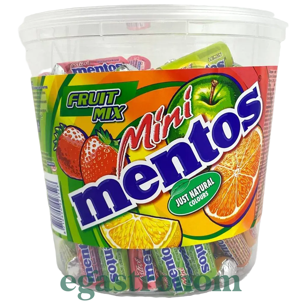 Велике задоволення в маленькому форматі: палички ментос Mini Fruit Mix поміщаються в будь-яку сумочку. Маленькі жувальні палички на смак такі ж смачні, як великі. У міні-рулетиках заховані фруктові смаки, такі як зелене яблуко, апельсин, лимон та полуниця. ТОП запити