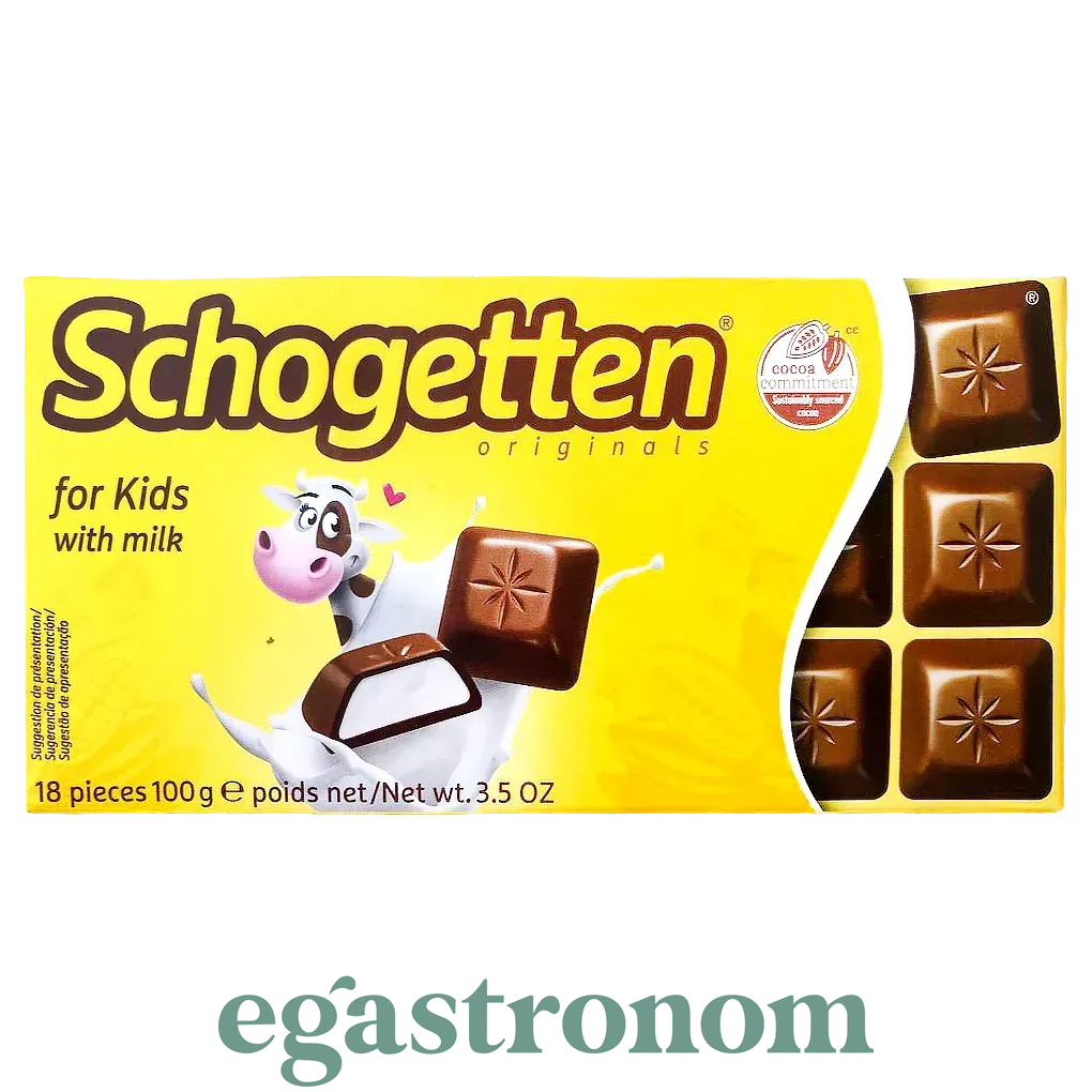 Рецепт молочного шоколаду Schogetten for Kids 100грам з вершковою начинкою був розроблений спеціально для дітей, щоб не тільки надихнути їх на ігри і веселе проведення часу з друзями, але зробити кожен десерт від Schogetten по-справжньому корисним. Насамперед, до складу молочного шоколаду з вершковою начинкою входить альпійське молоко, збагачене вітамінами.