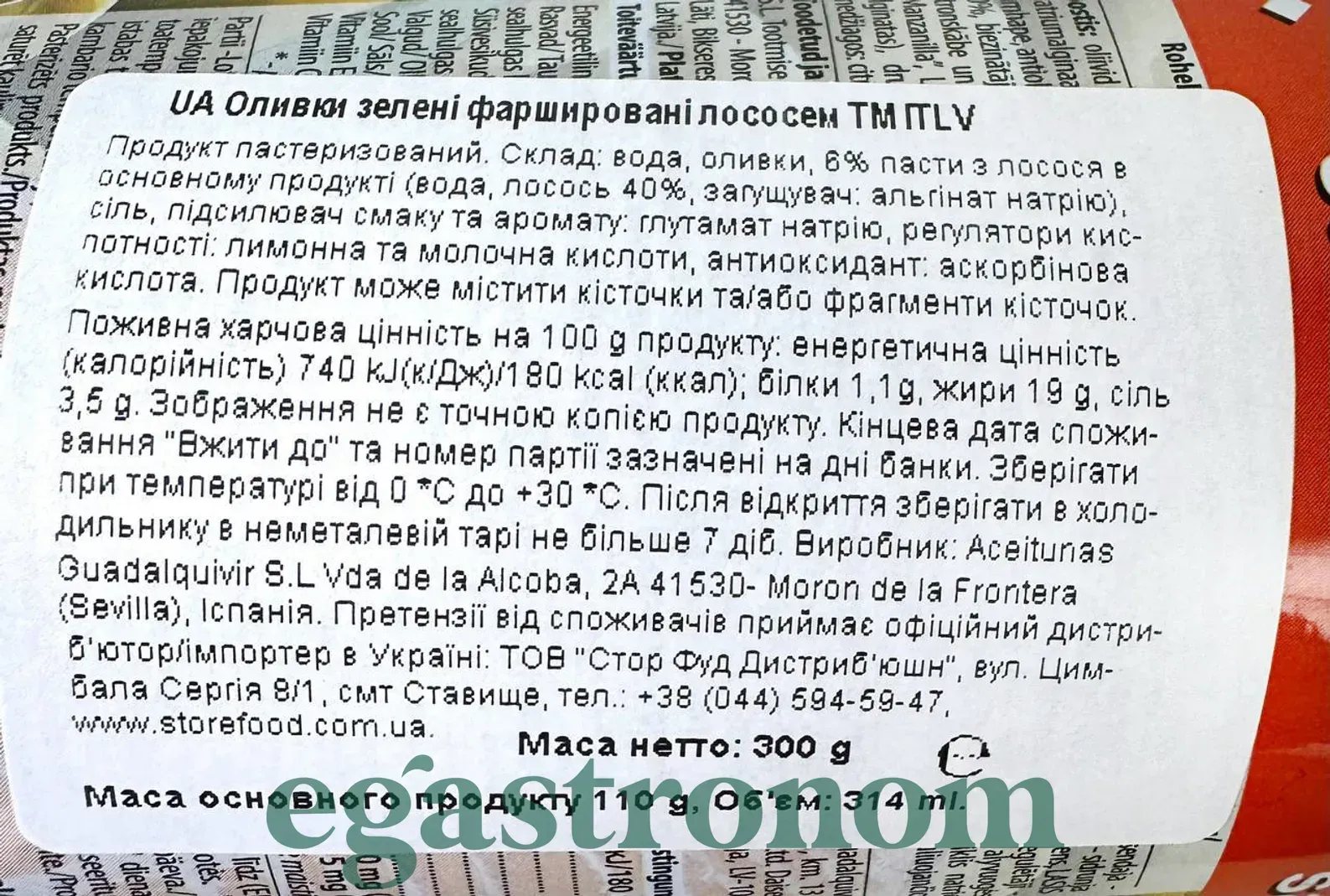 Оливки фаршировані лососем ж/б ІТЛВ ITLV 314ml 6шт/ящ