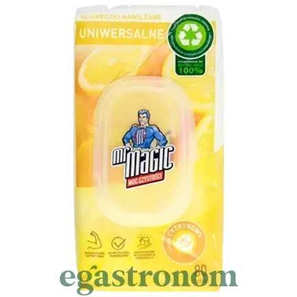 Серветки вологі універсальні лимон Мр. Меджик Mr. Magic cetrynowy 80szt 10шт/ящ