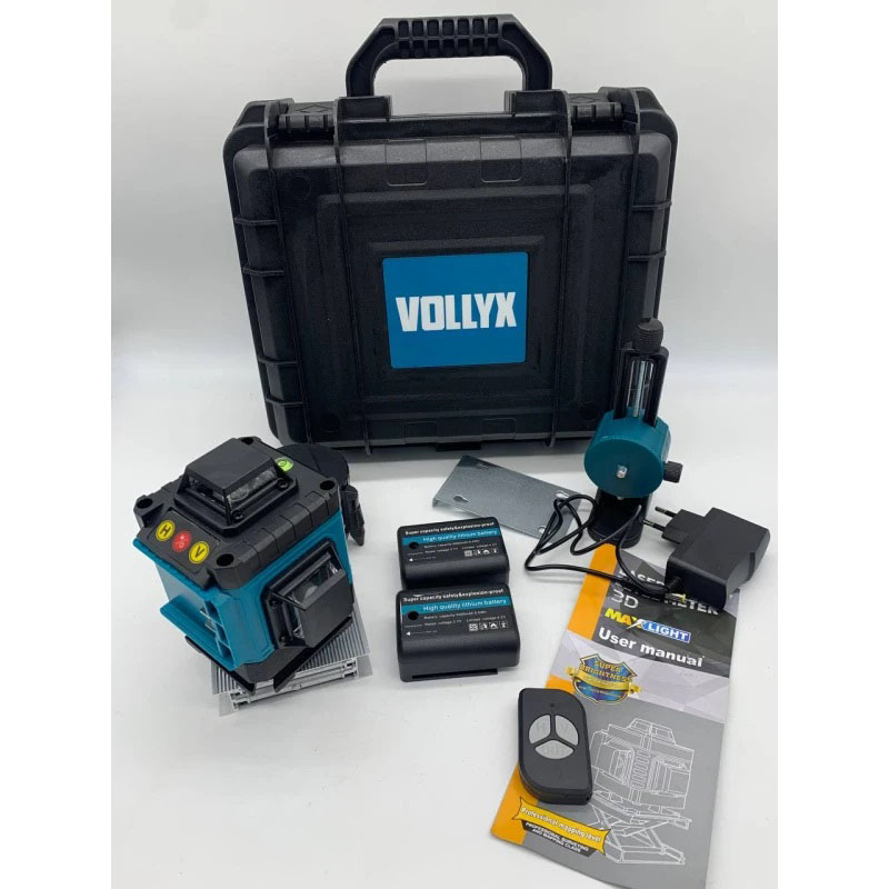 Лазерний рівень 3D з синім лазером та акумуляторами в кейсі