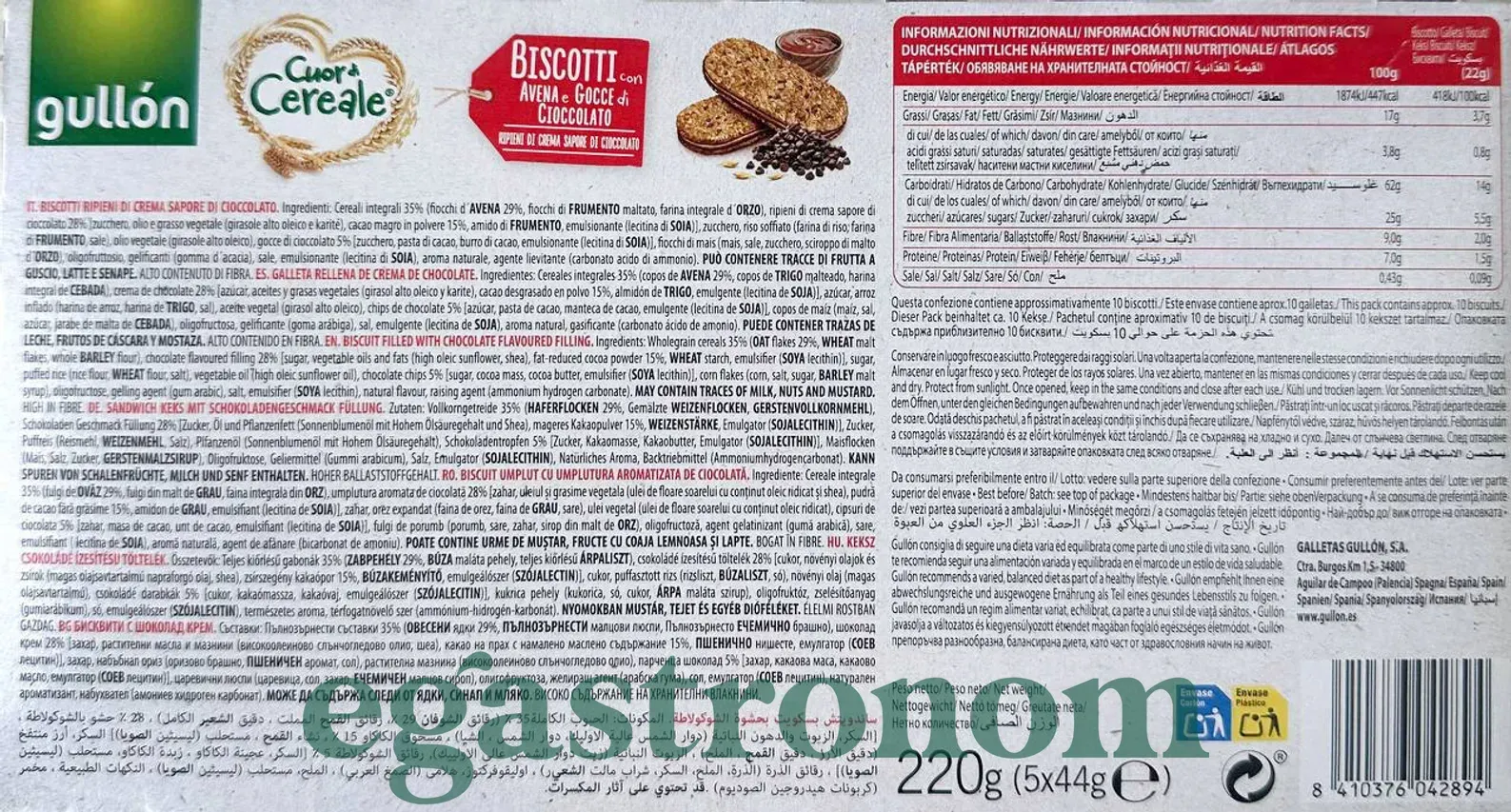 Печиво вівсяне з горіховою начинкою Гуллон Gullon 220g 8шт/ящ
