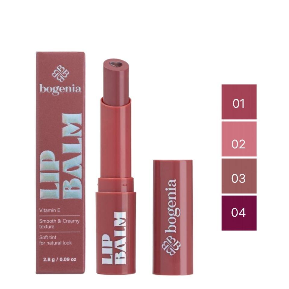 Кольоровий живильний бальзам для губ Bogenia Живильний бальзам для губ Bogenia BG716 має кремову текстуру, яка дарує легкий делікатний відтінок, зволожує і пом'якшує шкіру. Засіб створює комфортне покриття, захищаючи губи від сухості та надаючи природного блиску. Ідеальний для щоденного догляду та швидкого відновлення губ. Основні властивості бальзаму для губ Bogenia BG716 Як працює:інтенсивно пом'якшує шкіру губ завдяки кремовим емолієнтам; надає легкий відтінок для природного щоденного макіяжу; захищає губи від сухості та стягнутості; створює гладке, комфортне покриття без липкості.Активні компоненти Як діють активи засобу:вітамін Е - антиоксидантний захист, пом'якшення; кандедильський віск - створює захисну плівку, утримує вологу.Кому підходить Цей засіб ідеальний для:щоденного догляду за сухими та чутливими губами; поціновувачів легкого природного макіяжу; тих, хто потребує швидкого зволоження та захисту; користувачів, які обирають м'яку кремову текстуру без липкості.Ефект від використання бальзаму для губ Bogenia BG716м'які та зволожені губи вже після першого нанесення; доглянутий природний вигляд із легким відтінком; захист від сухості та комфорт протягом дня; делікатний блиск і рівне покриття.Спосіб використання Нанесіть необхідну кількість бальзаму на губи та рівномірно розподіліть. Використовуйте за потреби протягом дня. Об'єм та форма випуску Стік - зручна форма для щоденного використання та носіння в косметичці, 2,8 г.