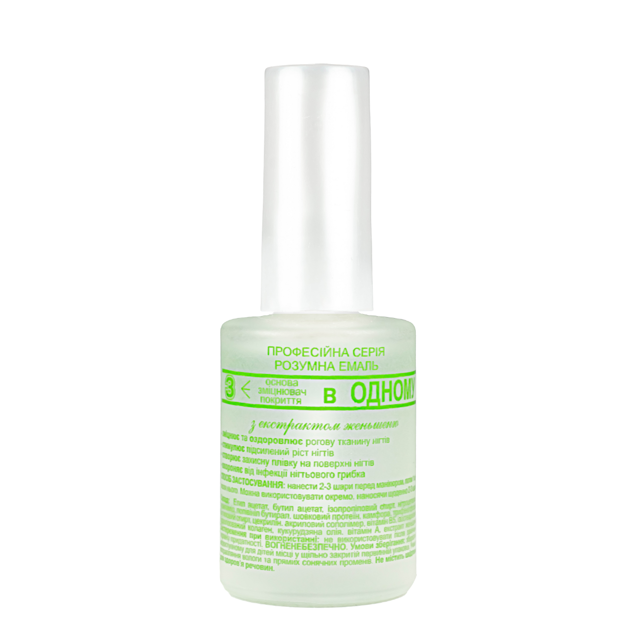 Універсальний засіб з екстрактом женьшеню – лікувальна терапія для Ваших нігтів. Цей продукт поєднує в собі три складові: основу, покриття і зміцнювач. Покращена формула, тонко збалансований склад компонентів допоможе повернути вашим нігтям міцність і пружність, додасть їм натуральний блиск і здоровий вигляд і, безсумнівно, допоможе зростанню нігтів. Спеціальні натуральні добавки захищає нігті від грибкових захворювань.Спосіб застосування: Нанести 1-2 шари перед манікюром, потім 1 шар після нього. Повторювати процедуру 3 рази в тиждень. Через 2 тижні Ви зможете переконатися в реальній дієвості цього препарату.Обсяг - 11 мл