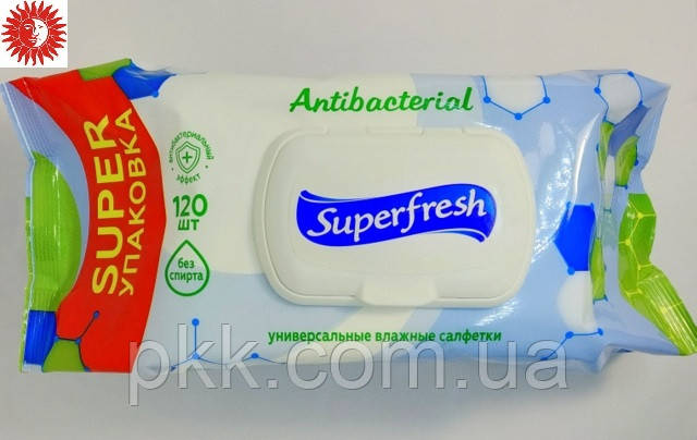 Влажные салфетки антибактериальные с клапаном Superfresh 120 шт