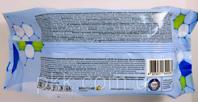Влажные салфетки Superfresh Антибактериальные с клапаном 120 шт