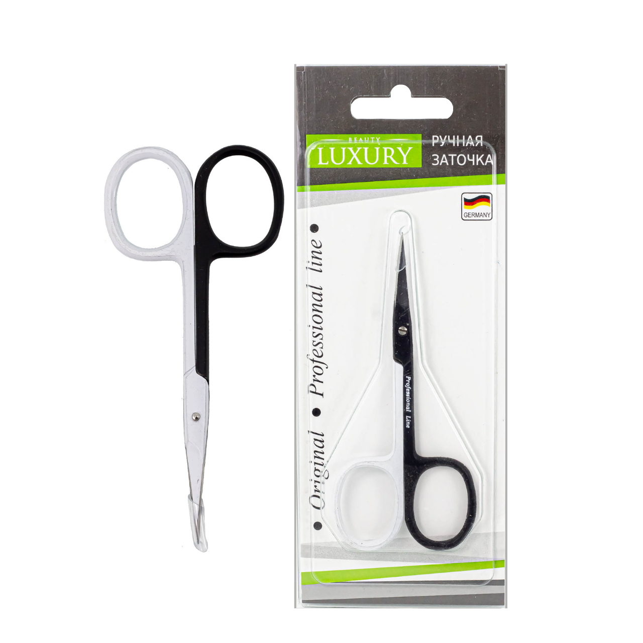 Розмір: довжина леза 25 ммДовжина ножиць: 95 мм,Лезо: вигнутіРучне заточування.Колір ручки: білий/чорний