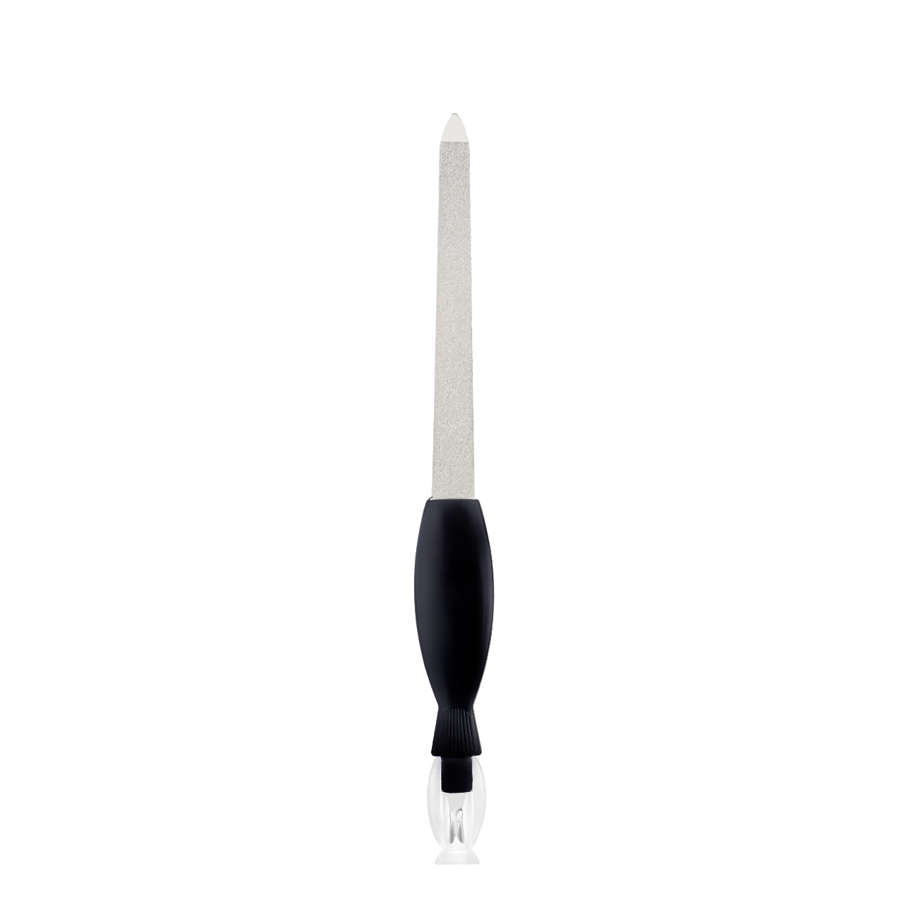 Пилка для нігтів Beauty Luxury виконана з нержавіючої сталі найвищої якості, яка має спеціальне дрібнозернисте напилення - мікрочастинки синтетичного сапфіру. Вона м'яко обробляє вільні краї нігтьових пластин, надаючи бажану довжину і форму, а різець, що є частиною інструменту, буде незамінним помічником при обробці шкірки навколо нігтя.
