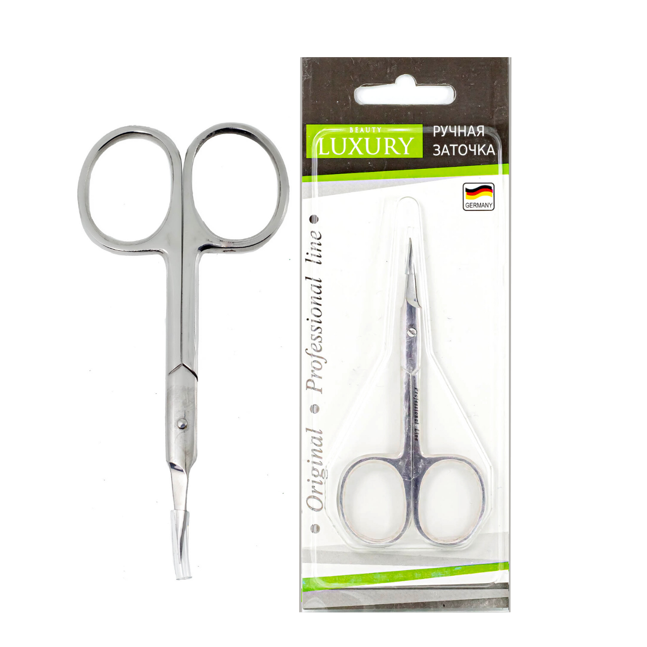 Розмір: довжина леза 26 ммДовжина ножиць: 94 мм,Лезо: вигнутіРучне заточування.Колір: сталеві