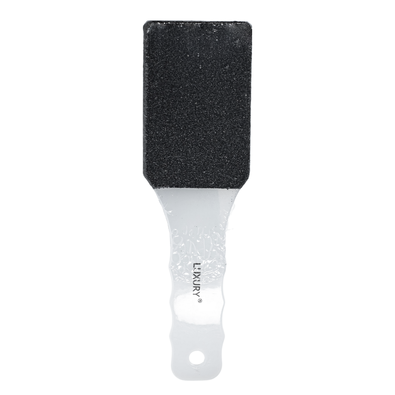 Шліфувальна терка для п'ят Beauty Luxury двостороння Шліфувальна пилка для педикюру пластмасова Beauty Luxury призначена для обробки грубої шкіри п'ят. Вона має дві повноцінні робочі поверхні з розміром зерна в 80 і 120 грит. Залежно від стану шкіри ніг ви зможете самостійно вибирати найбільш підходящу для вас сторону. Виробом легко управляти завдяки комфортній ергономічній ручці. За допомогою цього педикюрного інструменту ви легко усунете натоптиші, грубі мозолі, додасте п'ятам гладкість і доглянутий, акуратний вигляд. Форма терки вигнута. Пилка для педикюру допомагає досягати максимального результату в комплексі зі спеціальним скрабом. Перед проведенням процедур слід ретельно розпарити шкіру ніг. А зручна ергономічна рукоятка перетворює процес позбавлення від грубої шкіри максимально легким і доступним навіть новачкові.Спосіб застосування: обробіть ороговілі ділянки крупнозернистою стороною пилки. Потім відшліфуйте шкіру до гладкого стану дрібнозернистою стороною. Після використання необхідно промити пилку теплою водою.Довжина: 23 смШирина: 6.8 см