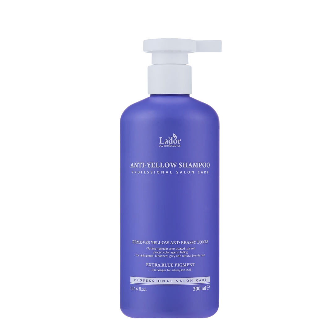 Шампунь відтіночний проти жовтизни волосся La'dor Anti Yellow ShampooШампунь La`dor Anti Yellow Shampoo призначений для сивого, натуральних світлого волосся, а також освітлення та забарвлених в платинові відтінки. Розгладжує волосся, усуває сухість, ламкість. Надає еластичність, пружність. Волосся стає гладкими і блискучими. Від жовтизни до складу шампуню входить фіолетовий пігмент з ягідних екстрактів.В основі шампуню - екстрасіній пігмент, який допоможе нейтралізувати жовті і мідні відтінки, надати пасмам благородний холодний відтінок, сліпучий блиск.Шампунь комплексно доглядає за волоссям, робить їх м'якими, слухняними, сяючими.Комплекс Multi-Spectrum Defense захищає волосся від вицвітання. Шампунь містить гідролізовані протеїни пшениці, сої, кукурудзи і пантенол, які інтенсивно живлять, зволожують і відновлюють пошкоджене волосся, усувають ламкість, надають еластичність, гладкість і блиск. Рекомендовано використовувати шампунь, коли жовтизна і зміна тону з'явилися, але не як профілактику.Спосіб застосування: Нанесіть шампунь на зволожене волосся і помасажуйте шкіру голови протягом 2-5 хвилин. Після змийте шампунь теплою проточною водою.Об'єм: 300 мл