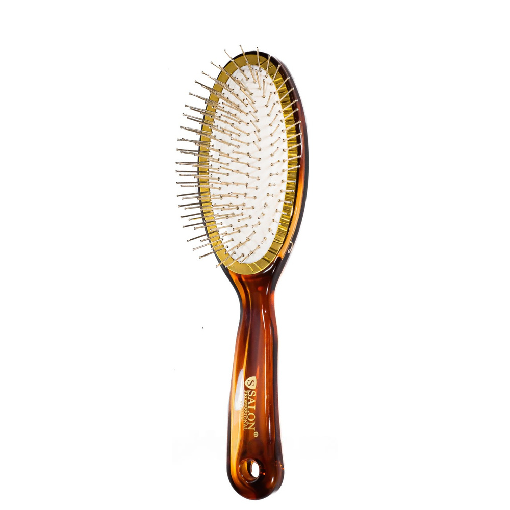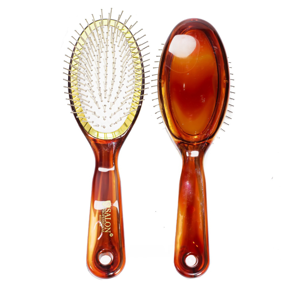 Масажна щітка для волосся овальної форми, укрита залізними зубчиками на м'якій подушці, які оснащені круглими наконечниками. Призначена для щадного догляду за локонами і їх легкої укладання. Підстава і ручка виготовлені з високоякісного напівпрозорого пластика.