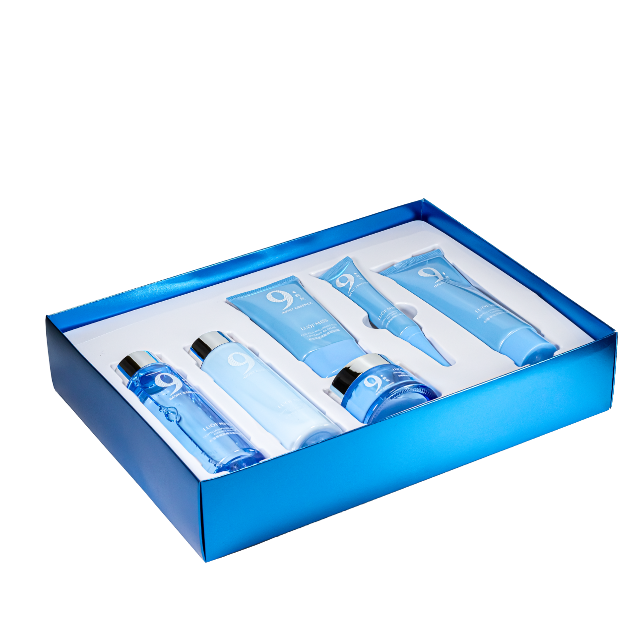 | Склад набору | Пілінг|Тонер|Емульсія|Крем для обличчя|Крем для повік|Пінка-мус |