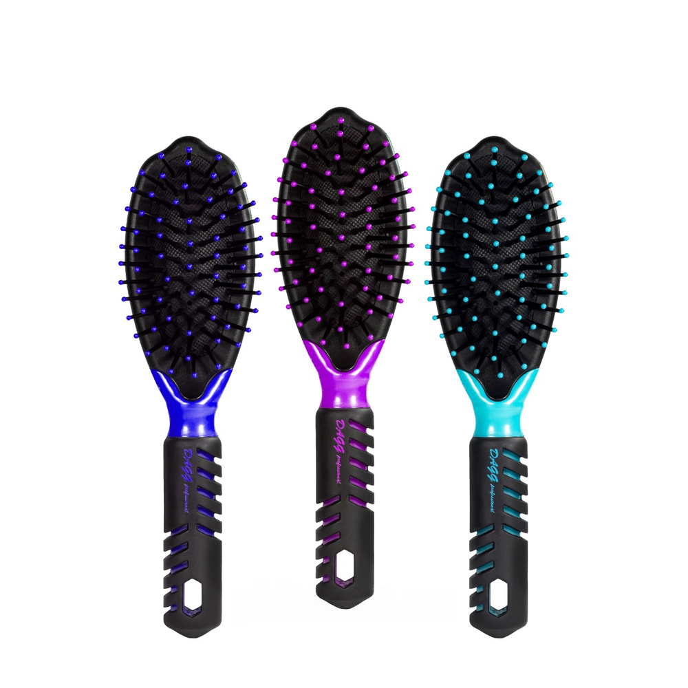 Щітки для волосся DAGG масажна пластикова маленька 17 см 2903Масажна гребінець DAGG 2903 для волосся овальної форми, вкрита пластиковими м'якими зубчиками на м'якій подушці, які оснащені круглими наконечниками, призначена для дбайливого догляду за волоссям і їх легкої укладання. Підстава і ручка виготовлені з високоякісного пластику.Щітка розплутує пасма і забезпечує дбайливий і легкий масаж, який сприяє значному поліпшенню кровотоку і прискорення обмінних процесів. Внаслідок регулярного застосування пасма набувають здоровий і доглянутий вигляд, стають більш міцними, м'якими і шовковистим.Спосіб застосування: використовують для розчісування і укладки волосся.Довжина: 17 смШирина: 4,5 см