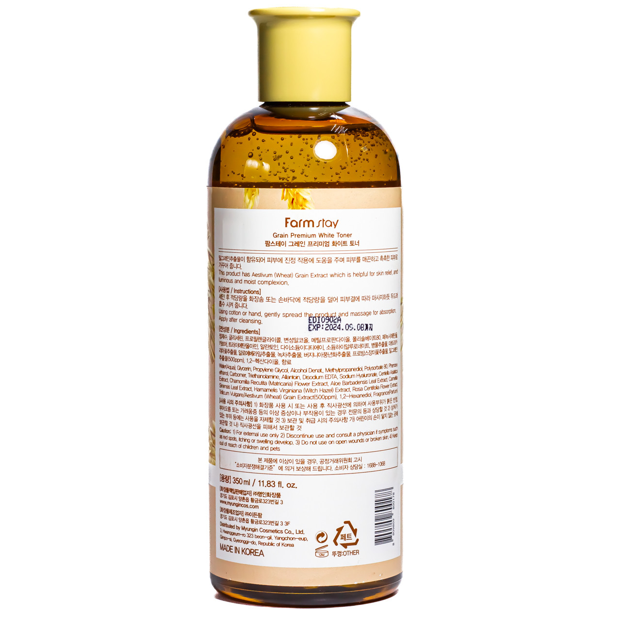Тонер для обличчя зволожувальний FarmStay Grain premium white з екстрактом пшениці 350 мл